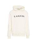 Dieser lässige Kapuzenpullover von Lanvin besticht durch seinen markanten Logodruck auf der Brust. Er verfügt über eine praktische Känguru-Tasche und eine Kapuze mit Kordelzug. Gerippte Bündchen und Saum sorgen für eine bequeme Passform. Ein vielseitiges Essential, das in Portugal gefertigt wurde.