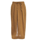 Dieser elegante Midirock von Otto d'ame besticht durch seine Fertigung aus reinem Leinen, das an warmen Tagen für ein angenehmes Tragegefühl sorgt. Ein elastischer Taillenbund mit dekorativen Schleifendetails garantiert eine perfekte Passform und eine feminine Silhouette. Die feinen Falten verleihen dem Rock ein luftiges Volumen und unterstreichen den entspannten, luxuriösen Look.