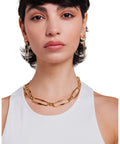 Die elegante Halskette 'Sylvie' von Federica Tosi besticht durch ihr einzigartiges Gliederkettendesign. Die länglichen, leicht verdrehten Glieder schaffen eine ansprechende Textur und ein modernes Erscheinungsbild. Dieses vielseitige Accessoire ist eine perfekte Ergänzung für jeden Look, von leger bis formell. Gefertigt in Italien, zeugt sie von hochwertiger Handwerkskunst.