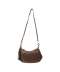 Diese moderne Schultertasche aus Kunstleder überzeugt durch ihr einzigartiges Design mit zahlreichen Nietendetails. Das Modell bietet ausreichend Platz und ist ein stilvoller Begleiter für den Alltag oder besondere Anlässe. Der verstellbare Schulterriemen und ein internes Reißverschlussfach sorgen für optimalen Tragekomfort und Sicherheit.
