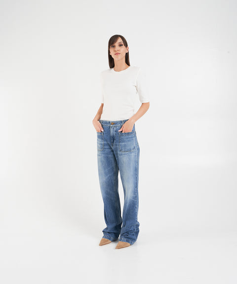 Diese 'Curt' Flared Jeans von Seafarer überzeugt mit ihrem ikonischen Design und der hochwertigen Denim-Qualität. Sie zeichnet sich durch einen hohen Bund und markante aufgesetzte Taschen auf der Vorderseite aus. Der weite Beinverlauf sorgt für eine elegante Silhouette. Hergestellt in Italien, ist sie ein vielseitiges Essential für die moderne Garderobe.