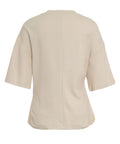 Das T-Shirt 'Enora' von Second Female besticht durch sein modernes Design aus einer hochwertigen Baumwollmischung. Ein besonderer Blickfang ist das goldfarbene dekorative Element an der Seite, welches für raffinierte Raffungen und eine drapierte Silhouette sorgt. Mit seinem klassischen Rundhalsausschnitt und den locker geschnittenen Ärmeln bietet dieses Modell erstklassigen Tragekomfort für exklusive Freizeit-Looks.