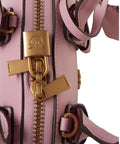 Diese elegante Handtasche präsentiert sich als luxuriöses Accessoire für den stilvollen Alltag. Gefertigt aus einer hochwertigen Ledermischung, besticht sie durch ihre raffinierte Form und die edlen Metallapplikationen. Zwei Tragegriffe und ein praktischer Reißverschluss sorgen für Funktionalität. Das prägnante Markenlogo auf der Vorderseite unterstreicht die exklusive Herkunft.