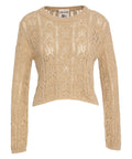 Dieser exquisite Pullover von Semicouture, gefertigt in Italien, besticht durch seine filigrane Strickart und seine hochwertige Baumwollmischung. Das Modell präsentiert sich mit einem klassischen Rundhalsausschnitt und langen Ärmeln. Die besondere Lochstrick-Textur verleiht ihm eine luftige Eleganz. Ideal für stilvolle Lagenlooks oder als leichtes Statement-Piece.