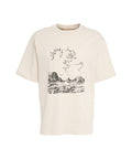 Dieses T-Shirt von Rue de Tokyo zeichnet sich durch seinen einzigartigen Aufdruck aus, der eine weite Landschaft mit Vögeln und einer menschlichen Figur darstellt. Das Modell 'Torin' bietet einen entspannten Schnitt mit Rundhalsausschnitt und kurzen Ärmeln. Es ist ein vielseitiges Kleidungsstück für den Alltag, das Komfort und individuellen Stil vereint.