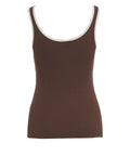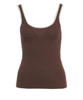 Dieses elegante Top besticht durch sein zeitloses Design und eine hochwertige Rippenstruktur. Gefertigt aus einer feinen Baumwollmischung, bietet es einen angenehmen Tragekomfort und eine optimale Passform. Der klassische Rundhalsausschnitt und die schmalen Träger mit kontrastierenden Paspelierungen verleihen dem Modell eine feminine Note. Ein vielseitiges Essential mit dezenten Logodetails, das sich ideal für anspruchsvolle Layering-Looks eignet.