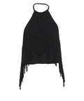 Dieses exklusive Top von Pinko besticht durch sein außergewöhnliches Design mit dynamischen Fransendetails, die bei jeder Bewegung mitschwingen. Der elegante Neckholder-Ausschnitt verleiht dem Modell eine feminine Silhouette, während der verkürzte Schnitt eine moderne Note setzt. Ein ideales Statement-Piece, das Handwerkskunst und zeitgenössischen Stil für sommerliche Anlässe perfekt vereint.