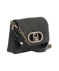 Die 'LaPuffy' Umhängetasche von Liu Jo ist ein luxuriöses Accessoire, das durch ihr allover Nietendetail besticht. Die Klappe ist mit einem markanten Logoverschluss versehen, der das Design elegant abrundet. Ein verstellbarer Schulterriemen ermöglicht vielseitige Tragemöglichkeiten, während das Innenfach Platz für Essentials bietet.