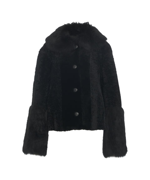Diese luxuriöse Jacke von 1972 Desa ist aus hochwertigem Lammfell gefertigt und besticht durch ihr elegantes Design. Sie präsentiert sich mit einem opulenten Pelzkragen und markanten Ärmeln mit breiten Fellbündchen. Eine glatte Knopfleiste vorne verleiht dem Modell eine raffinierte Note. Ideal für einen stilvollen Auftritt in der kälteren Jahreszeit.