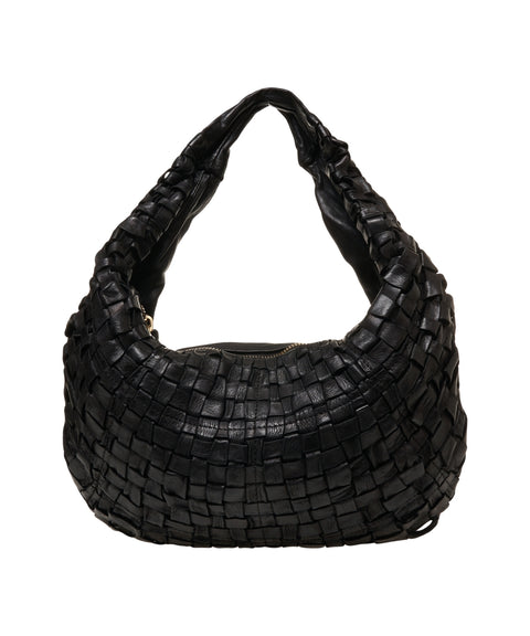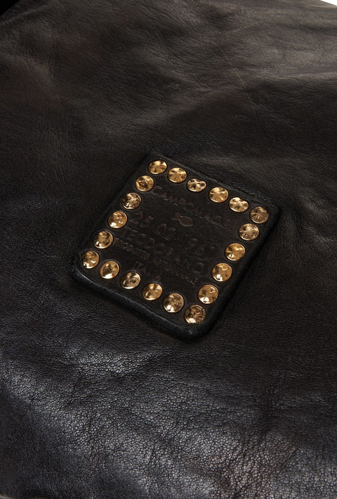 Diese elegante Campomaggi Schultertasche ist aus hochwertigem Glattleder gefertigt und besticht durch ihr weiches, geschmeidiges Material. Der breite Schulterriemen verfügt über kunstvolle geflochtene Details, die einen besonderen Akzent setzen. Eine markante Metallapplikation mit Nieten ziert die Vorderseite und unterstreicht den luxuriösen Charakter. Gefertigt in Italien, vereint diese Tasche handwerkliche Perfektion mit stilvollem Design.