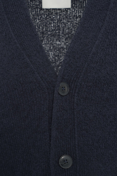 Diese hochwertige Strickjacke von Closed präsentiert sich mit einem klassischen V-Ausschnitt und einer durchgehenden Knopfleiste. Das grob gestrickte Design wird durch gerippte Bündchen an Ärmeln und Saum ergänzt, die für eine bequeme Passform sorgen. Ein zeitloses Kleidungsstück für vielseitige Looks.