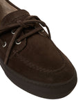 Diese luxuriösen Bootsschuhe 'CPH177' von Copenhagen sind aus hochwertigem Wildleder gefertigt. Sie präsentieren sich in einer klassischen Silhouette mit markanten Schnürdetails und runden Ösen. Eine moderne Plateausohle verleiht dem Design einen zeitgemäßen Touch und sorgt für Komfort. Hergestellt in Portugal, vereinen diese Schuhe traditionelle Eleganz mit urbanem Stil.