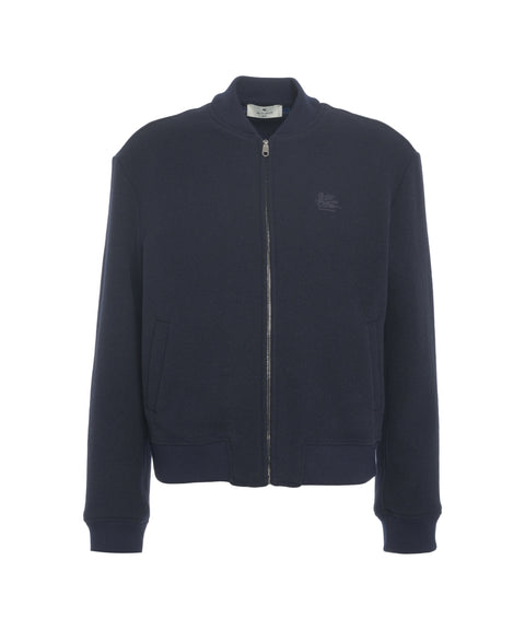 Diese hochwertige Bomberjacke von Etro überzeugt durch sportlichen Chic und raffinierte Details. Sie ist aus einem angenehmen Stricktextil gefertigt und verfügt über einen durchgehenden Reißverschluss sowie gerippte Abschlüsse an Kragen, Ärmeln und Saum. Eine dezente Logostickerei auf der Brust rundet das Design ab. Hergestellt in Italien, bietet sie vielseitigen Tragekomfort.
