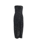 Dieses glamouröse Midi-Kleid präsentiert sich im schulterfreien Design und ist vollständig mit glänzenden Pailletten verziert, die für einen spektakulären Auftritt sorgen. Die figurbetonte Silhouette und die elegante Midi-Länge betonen die weibliche Form und machen es zur idealen Wahl für festliche Anlässe. Das Kleid ist sorgfältig verarbeitet und Made in Italien.