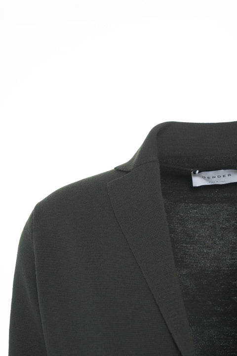 Dieser elegante Blazer der Marke Gender ist aus hochwertigem Stricktextil gefertigt und bietet eine komfortable Passform. Er zeichnet sich durch einen reversähnlichen Schalkragen, einen Knopfverschluss vorne und aufgesetzte Taschen aus. Ein vielseitiges Kleidungsstück, perfekt für gehobene Casual-Looks, hergestellt in Italien.