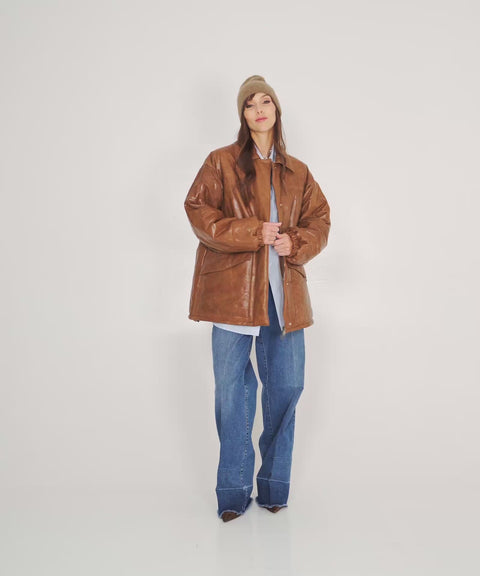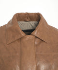 Diese luxuriöse Lederjacke von Giorgio Brato zeichnet sich durch ihr weiches, leicht strukturiertes Material aus. Sie präsentiert sich im lässigen Oversize-Fit mit klassischem Hemdkragen und praktischen Pattentaschen, die dem Design eine moderne, voluminöse Silhouette verleihen. Ein Statement-Piece, gefertigt in Italien.