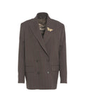 Dieser raffinierte Nadelstreifen Blazer von Golden Goose überzeugt mit seinem klassischen Doppelreiher-Design. Gefertigt in Italien, präsentiert er eine elegante Silhouette mit Pattentaschen und einer markanten Brosche. Er ist ideal für einen stilvollen Auftritt.