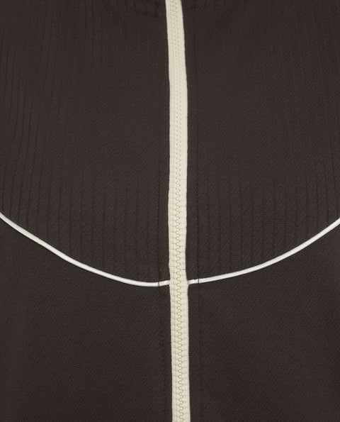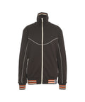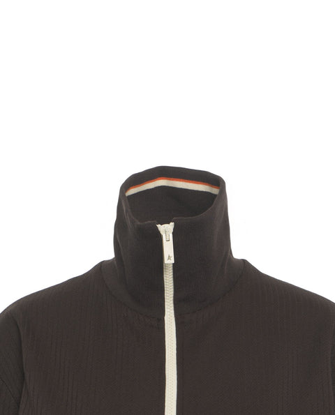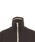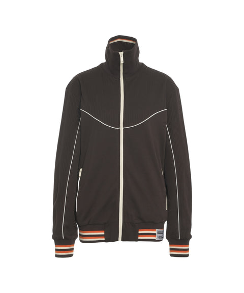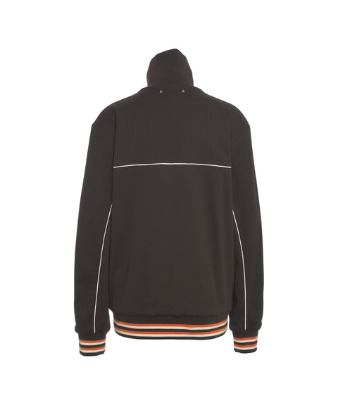Diese hochwertige Trainingsjacke besteht aus weichem Strickmaterial und verfügt über einen hohen Stehkragen sowie einen durchgehenden Reißverschluss. Gerippte Bündchen an Ärmeln und Saum mit charakteristischen Streifendetails runden das Design ab. Ein sportlich-eleganter Begleiter, der in Italien hergestellt wurde.