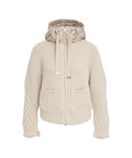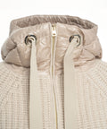 Dieser Herno Strickcardigan präsentiert sich als stilvolle Hybrid-Kreation. Das Modell zeichnet sich durch seinen grob gestrickten Körper und die glänzende, wattierte Kapuze und Frontpartie aus. Ein durchgehender Zweiweg-Reißverschluss und zwei aufgesetzte Taschen runden das Design ab. Ein luxuriöses Kleidungsstück für vielseitige Übergangslooks.