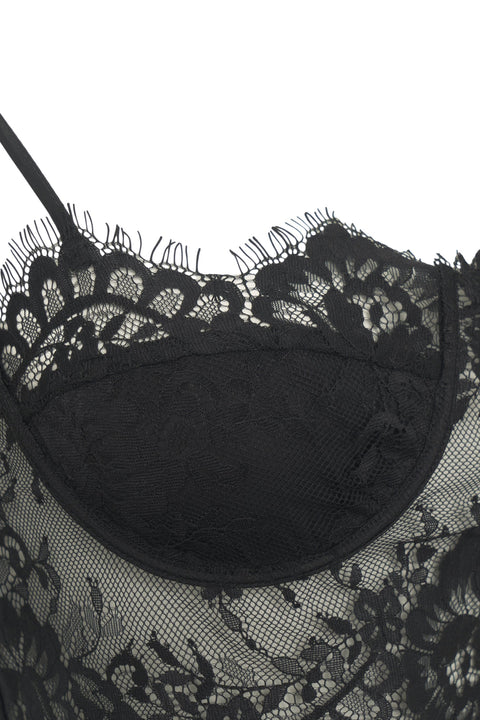 Dieses luxuriöse Spitzentop von Herskind ist ein Inbegriff femininer Eleganz. Gefertigt aus zarter Spitze, präsentiert es sich mit einem aufwendigen floralen Muster und einem verführerischen Schnitt im Bustier-Stil. Dünne, verstellbare Träger und ein wellenförmiger Saum runden das exklusive Design dieses vielseitigen Oberteils ab und verleihen jedem Outfit eine raffinierte Note.