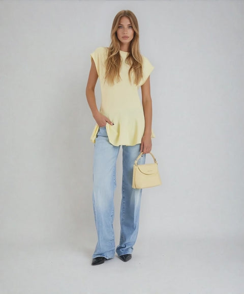 Das 'Sean' Top von Herskind, aus leichtem Strick gefertigt, besticht durch eine klare, leicht taillierte Silhouette, die sich sanft zu einem Peplum-Saum weitet und die Taille betont. Der klassische Rundhalsausschnitt und die minimalen kurzen Ärmel runden das moderne, elegante Design ab und machen es vielseitig einsetzbar – vom Tag- bis zum Abendlook. Ideal für elegante Outfits, ohne auf Komfort zu verzichten.