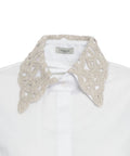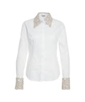 Diese elegante Bluse von Himons zeichnet sich durch seine aufwendige Stickerei an Kragen und Manschetten aus. Es präsentiert sich mit langen Ärmeln und einem klassischen Hemdkragen, der durch die detailreiche Verzierung einen luxuriösen Akzent erhält. Ein durchgehender Knopfverschluss rundet das stilvolle Design ab und macht es zu einem vielseitigen Kleidungsstück für besondere Anlässe und den Alltag.
