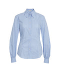Diese elegante Bluse von Himons präsentiert sich mit einem klassischen Streifenmuster. Sie verfügt über einen modernen Button-Down-Kragen und lange Ärmel mit geknöpften Manschetten. Der Schnitt sorgt für eine feminine Silhouette, ideal für vielseitige Looks. Ein zeitloses Essential für die stilvolle Damengarderobe.