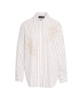 Diese klassische Bluse von Kaos präsentiert sich mit einem eleganten Nadelstreifenmuster. Detailreiche Stickereien in Blattform auf der Vorderseite setzen stilvolle Akzente. Mit ihrem Hemdblusenkragen, dem durchgehenden Knopfverschluss und den langen Ärmeln mit geknöpften Manschetten bietet sie ein zeitloses Design für vielseitige Kombinationen.