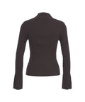 Dieser gerippte Strickpullover von Kaos präsentiert sich mit einem eleganten Stehkragen und langen Ärmeln, die in modischen Trompetenärmeln enden. Die feine Rippstruktur umspielt die Silhouette und sorgt für eine anspruchsvolle Textur. Ein vielseitiges Basic, das sowohl solo als auch im Lagenlook überzeugt.