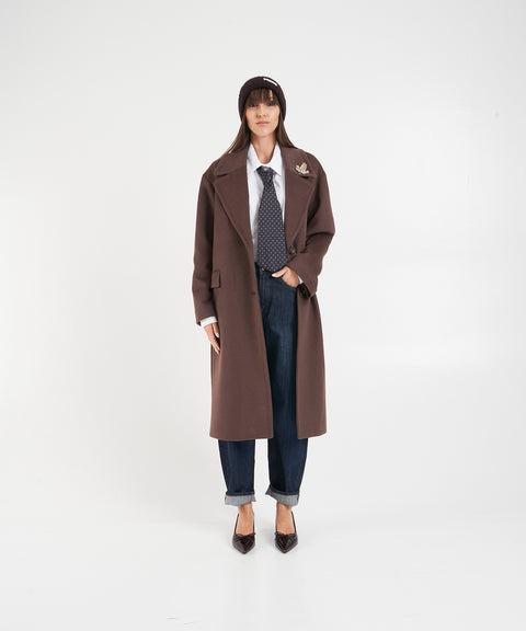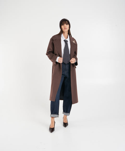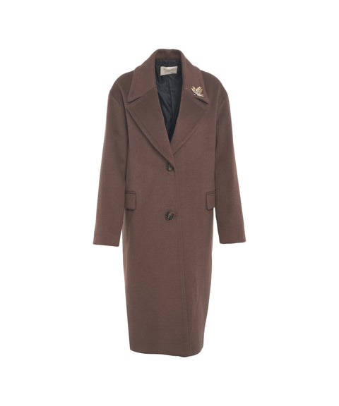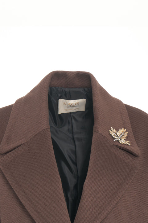 Dieser elegante Mantel von Kaos präsentiert sich mit einem klassischen Schnitt und einem edlen Reverskragen. Er verfügt über einen markanten Knopfverschluss und praktische aufgesetzte Taschen. Ein raffiniertes Federdetail am Revers verleiht diesem in Italien gefertigten Stück eine luxuriöse Note und unterstreicht seinen anspruchsvollen Stil.