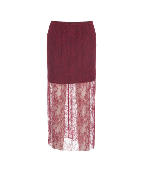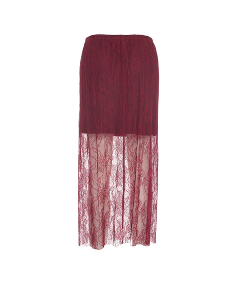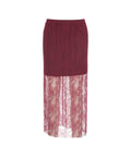 Dieser elegante Midi Rock besticht durch seine zweilagige Konstruktion. Ein blickdichter Oberrock wird stilvoll von einer zarten Spitzenlage ergänzt, die den Saum transparent verlängert. Der elastische Bund sorgt für eine bequeme Passform und hohen Tragekomfort. Hergestellt in Italien, verkörpert dieses Design raffinierte Weiblichkeit.