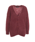 Diese luxuriöse Strickjacke von Kaos präsentiert sich in einem bequemen Oversize Schnitt und ist aus weichem Mohair gefertigt. Sie verfügt über einen eleganten V-Ausschnitt und wird vorne mit drei Knöpfen geschlossen. Die langen Ärmel und der lässige Stil machen sie zu einem vielseitigen Begleiter. Hergestellt in Italien.