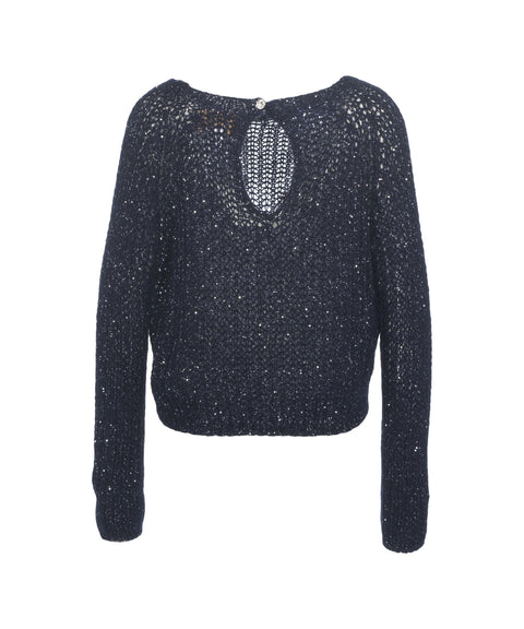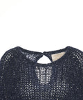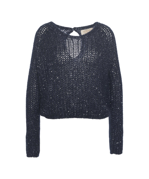 Dieser luxuriöse Strickpullover von Kaos besticht durch sein glitzerndes Finish und die offene Strickstruktur. Der Rundhalsausschnitt und die langen Ärmel bieten eine klassische Silhouette, während der rückseitige Schlitz mit Knopfverschluss einen raffinierten Akzent setzt. Das vielseitige Design passt perfekt zu eleganten oder lässigen Outfits. Hergestellt in Italien, verkörpert er italienische Handwerkskunst.