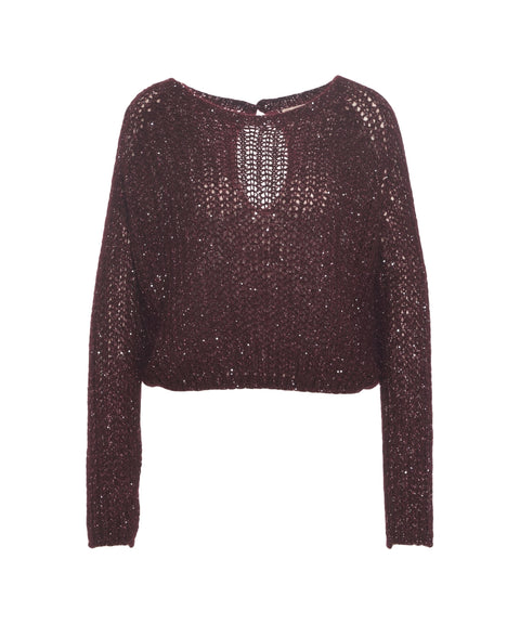 Dieser luxuriöse Strickpullover von Kaos besticht durch sein glitzerndes Finish und die offene Strickstruktur. Der Rundhalsausschnitt und die langen Ärmel bieten eine klassische Silhouette, während der rückseitige Schlitz mit Knopfverschluss einen raffinierten Akzent setzt. Das vielseitige Design passt perfekt zu eleganten oder lässigen Outfits. Hergestellt in Italien, verkörpert er italienische Handwerkskunst.