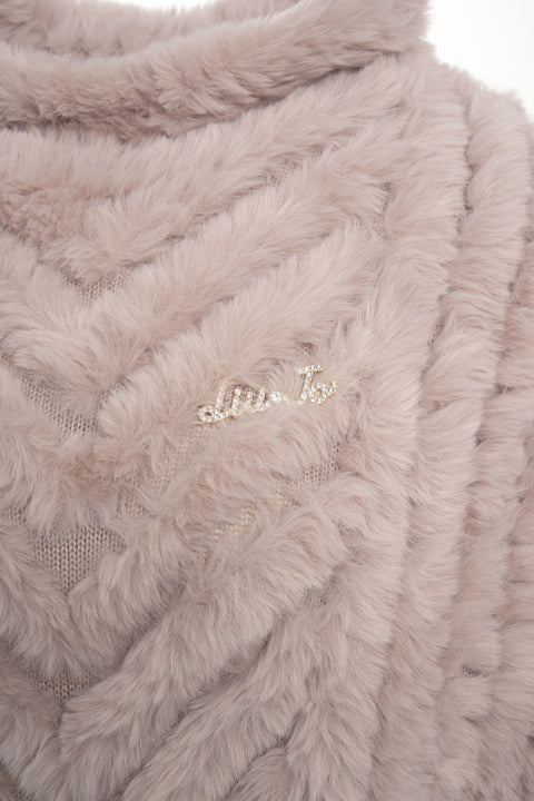 Dieser luxuriöse Poncho von Liu Jo präsentiert sich in weichem Kunstfell mit einem auffälligen Chevron-Muster. Er verfügt über einen hohen Kragen, der für zusätzliche Wärme und einen eleganten Look sorgt. Dezente Logodetails runden das exklusive Design ab. Ideal für stilvolle Lagenlooks in der kälteren Jahreszeit.