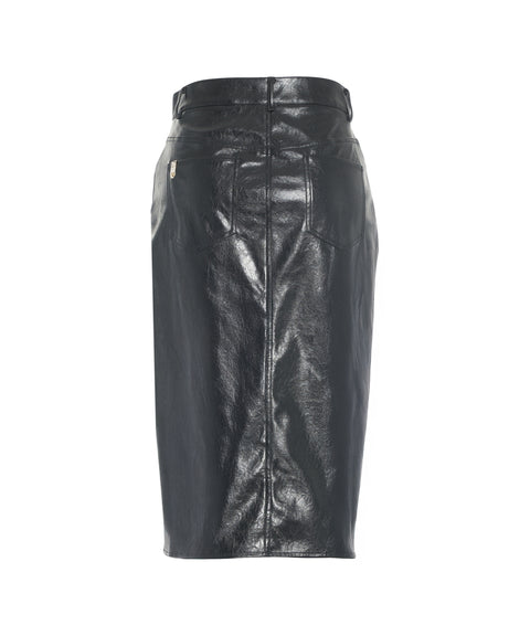 Dieser elegante Midi-Rock von Liu Jo Denim präsentiert sich mit einer modernen Silhouette aus hochwertigem Kunstleder, das eine leicht geknitterte Optik aufweist. Die hohe Taille und der zentrale Schlitz vorne sorgen für eine schmeichelhafte Passform und eine stilvolle Bewegung. Abgerundet wird das Design durch den praktischen Knopf- und verdeckten Reißverschluss, der für optimalen Tragekomfort sorgt.