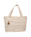Die luxuriöse Handtasche aus weichem Kunstfell begeistert mit einem einzigartigen Zopfstrickmuster, das für eine ansprechende Textur sorgt. Sie verfügt über robuste Griffe, die einen bequemen Tragekomfort gewährleisten. Ein elegantes, goldfarbenes Logodetail am Henkel verleiht dem Design eine raffinierte Note. Diese Tasche ist der perfekte Begleiter für stilvolle Auftritte und setzt ein modisches Statement.