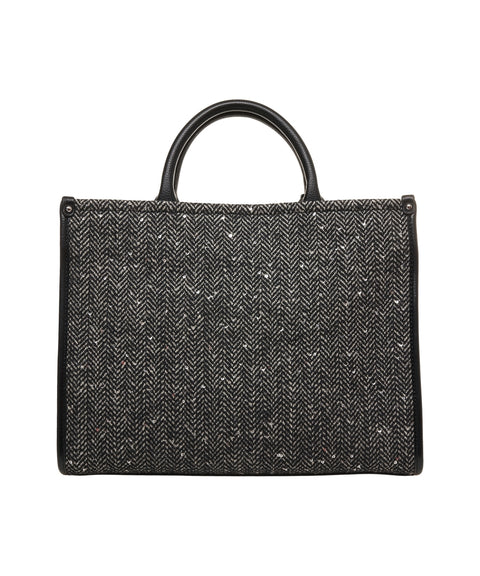 Dieser elegante Shopper besticht durch sein stilvolles Design aus hochwertigem Stricktextil mit markantem Fischgrätmuster. Er verfügt über robuste Tragegriffe und eine prominente Blende aus Kunstleder, auf der das geprägte Liu Jo Logo prangt. Das geräumige Hauptfach bietet viel Platz für alltägliche Essentials und macht ihn zum idealen Begleiter für moderne Looks. Ein abnehmbarer Anhänger rundet das Design ab.