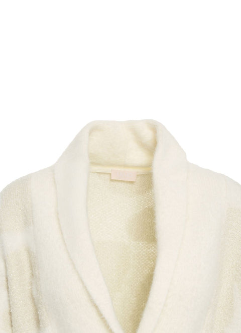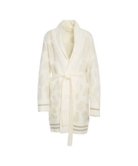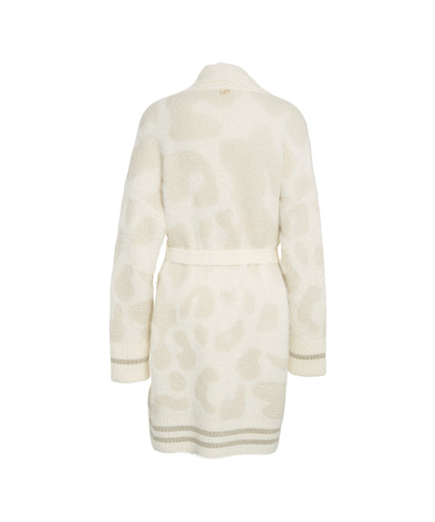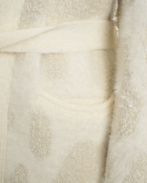 Dieser luxuriöse Strickmantel ist aus einem weichen Stricktextil gefertigt und präsentiert sich mit einem eleganten Schalkragen. Er verfügt über einen Bindegürtel auf Taillenhöhe für eine individuelle Passform und zwei aufgesetzte Taschen. Das dezente Muster und die gerippten Abschlüsse an Ärmeln und Saum verleihen dem Design eine edle Note.