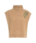 Dieser luxuriöse Strickpullover von Liu Jo White präsentiert sich in einem feinen Rippstrickdesign. Er zeichnet sich durch einen hohen Rollkragen mit halber Knopfleiste und eine aufwendige, goldfarbene Stickerei auf der Brust aus. Das ärmellose Design bietet eine elegante Silhouette für vielseitige Kombinationen.