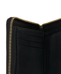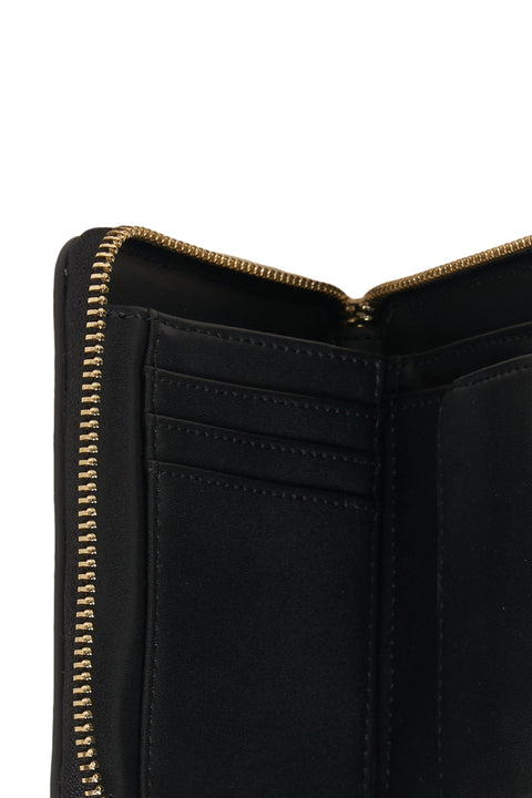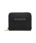 Dieses kompakte Portemonnaie von Love Moschino präsentiert sich in einer strukturierten Kunstlederoptik. Es ist mit einem praktischen Rundum-Reißverschluss versehen, der einfachen Zugang zu den Innenfächern ermöglicht. Ein prominenter goldfarbener Logoschriftzug auf der Vorderseite sowie passende Reißverschlussdetails setzen glänzende Akzente. Dieses Accessoire vereint Funktionalität mit dem charakteristischen Design der Marke.