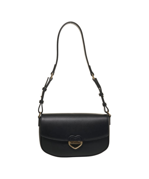 Diese elegante Schultertasche von Love Moschino ist aus hochwertigem Saffianlederimitat gefertigt und besticht durch ihr klassisches Design. Die Klappe mit abgerundeter Unterseite wird von einem markanten goldfarbenen Herz-Logodetail akzentuiert. Ein verstellbarer Schulterriemen ermöglicht vielseitige Tragemöglichkeiten, während das Innere ausreichend Platz für persönliche Gegenstände bietet.