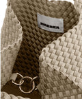 Diese exklusive Handtasche besticht durch ihre charakteristische Flechtstruktur, die ihr eine moderne und luxuriöse Ästhetik verleiht. Sie ist aus hochwertigem Neopren gefertigt, das für seine Strapazierfähigkeit und angenehme Haptik bekannt ist. Mit ihren zwei bequemen Henkeln und einem geräumigen Hauptfach ist sie der ideale Begleiter für stilbewusste Alltagslooks.