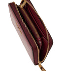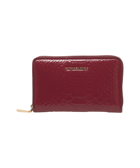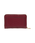 Dieses stilvolle Portemonnaie zeichnet sich durch sein edles Kroko-Design und das glänzende Lack-Finish aus. Der umlaufende Reißverschluss sorgt für sicheren Verschluss, während das goldfarbene Logodetail auf der Vorderseite einen luxuriösen Akzent setzt. Innen bietet es praktische Steckfächer für Karten und ein Münzfach mit Reißverschluss für optimale Organisation. Ein kompaktes und elegantes Accessoire für den täglichen Gebrauch.