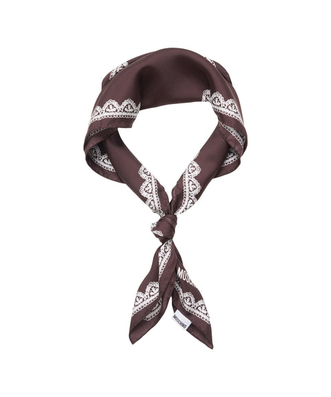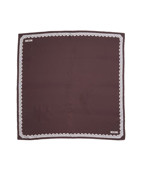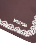 Dieses hochwertige Seidentuch von Moschino besticht durch sein elegantes Spitzenmuster und den markanten Logodruck. Gefertigt in Italien, ist es ein vielseitiges Accessoire, das jedem Outfit eine luxuriöse Note verleiht. Die weiche Seide sorgt für ein angenehmes Tragegefühl und fließenden Fall.