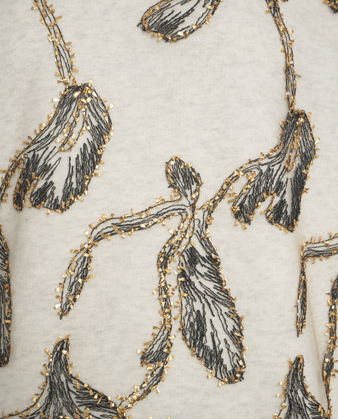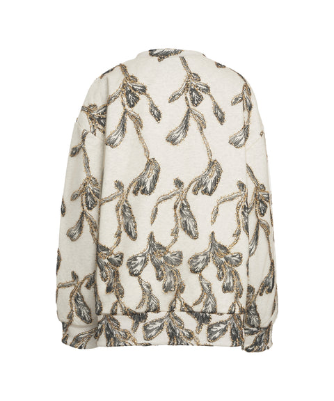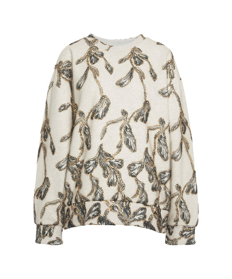 Das luxuriöse Sweatshirt 'Lofa' von Munthe besticht durch seine exquisite, durchgehende Stickerei in einem floralen Dessin, die dem lockeren Oversize-Schnitt eine raffinierte Textur verleiht. Es ist mit einem klassischen Rundhalsausschnitt und komfortablen Rippbündchen an Saum und Ärmeln ausgestattet. Dieses modische Oberteil vereint Eleganz mit lässigem Komfort und ist ideal für anspruchsvolle Alltagslooks.
