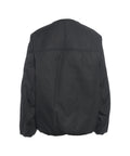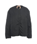 Diese moderne Bomberjacke zeichnet sich durch ihr übergroßes Design und den kragenlosen Stil aus. Sie verfügt über einen durchgehenden Reißverschluss und seitliche Eingrifftaschen für praktische Funktionalität. Eine zusätzliche Reißverschlusstasche am Ärmel unterstreicht den lässigen Look. Hergestellt in Italien, bietet dieses Stück luxuriösen Tragekomfort für den Alltag.