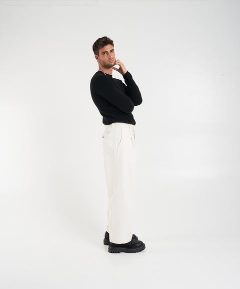 Die Hose 'Philip' von Nine in the morning präsentiert sich in einem entspannten Wide-leg Schnitt, der für eine lässige Eleganz sorgt. Charakteristische Bundfalten vorne und ein gerader Beinverlauf definieren das Design. Gefertigt aus einem hochwertigen Baumwollgewebe bietet sie optimalen Tragekomfort. Dieses Modell ist eine vielseitige Ergänzung für die moderne Garderobe.