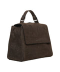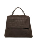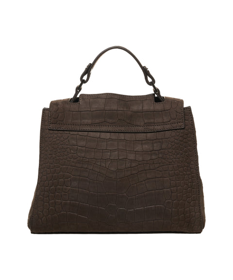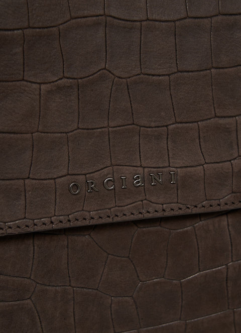 Diese luxuriöse Handtasche 'Sveva' von Orciani ist ein stilvolles Accessoire für jede Garderobe. Gefertigt aus hochwertigem Leder mit markanter Kroko-Optik, besticht sie durch ihre Eleganz und feine Verarbeitung. Ein praktischer Tragegriff und eine Überschlagklappe mit Logo-Prägung runden das Design ab. Hergestellt in Italien, verkörpert sie höchste Handwerkskunst.