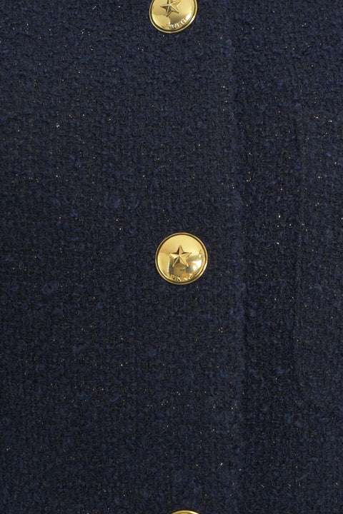 Die Pinko 'Ghiacciolo' Freizeitjacke ist ein stilvolles Kleidungsstück, das durch sein strukturiertes Design besticht. Sie verfügt über einen klassischen Kragen, aufgesetzte Taschen und auffällige goldfarbene Knöpfe, die einen luxuriösen Akzent setzen. Der abgerundete Saum verleiht der Jacke eine moderne Note. Hergestellt in Italien, verkörpert diese Jacke exquisite Handwerkskunst und zeitlose Eleganz für den anspruchsvollen Alltag.